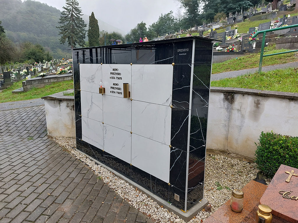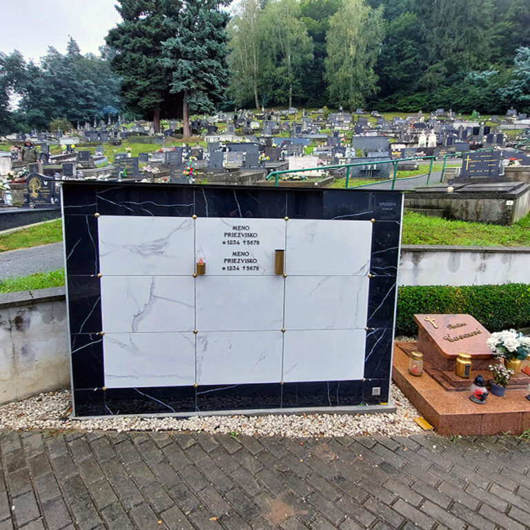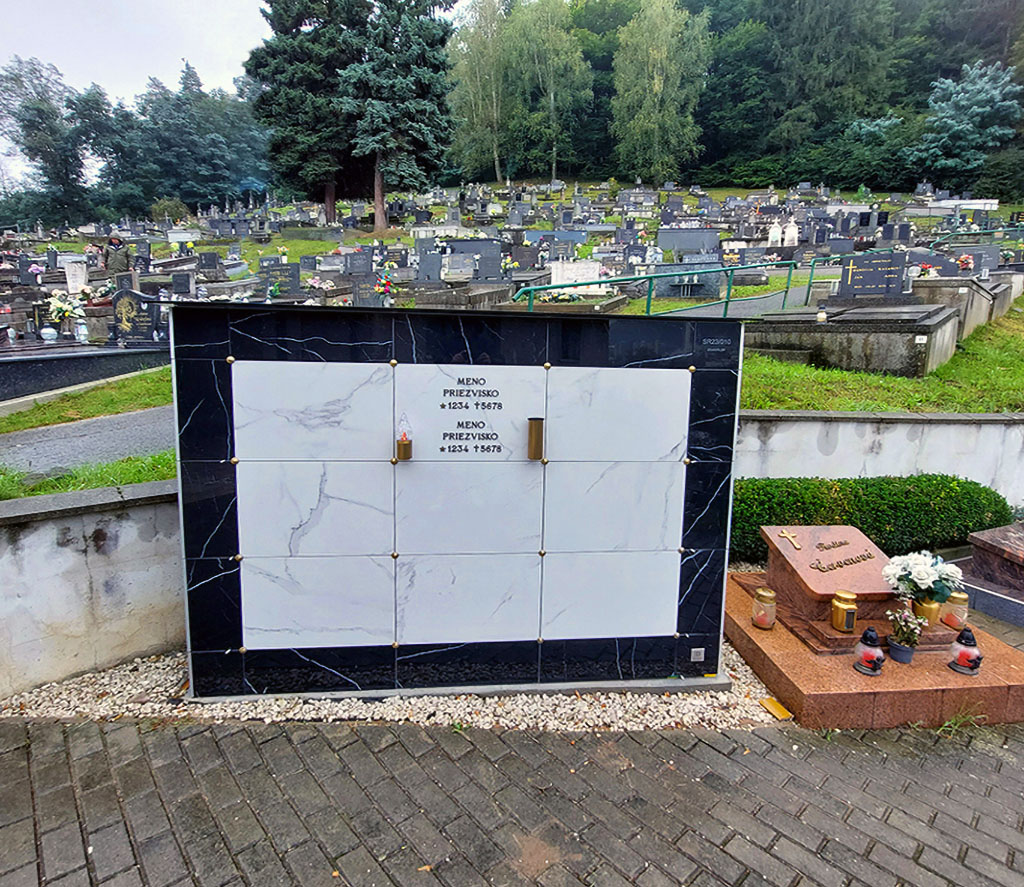 Modernou a čoraz častejšou voľbou je uloženie urny do kolumbária, ktoré ponúka trvalé a estetické miesto posledného odpočinku. Príklad z obce Smižany....